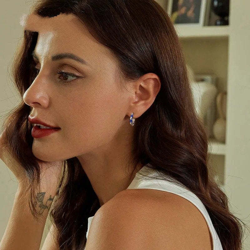 [Description] The iris hoop earrings with blue enamel process exude nobility and mystery. symbolizing light and freedom. as well as divine blessings and happiness.